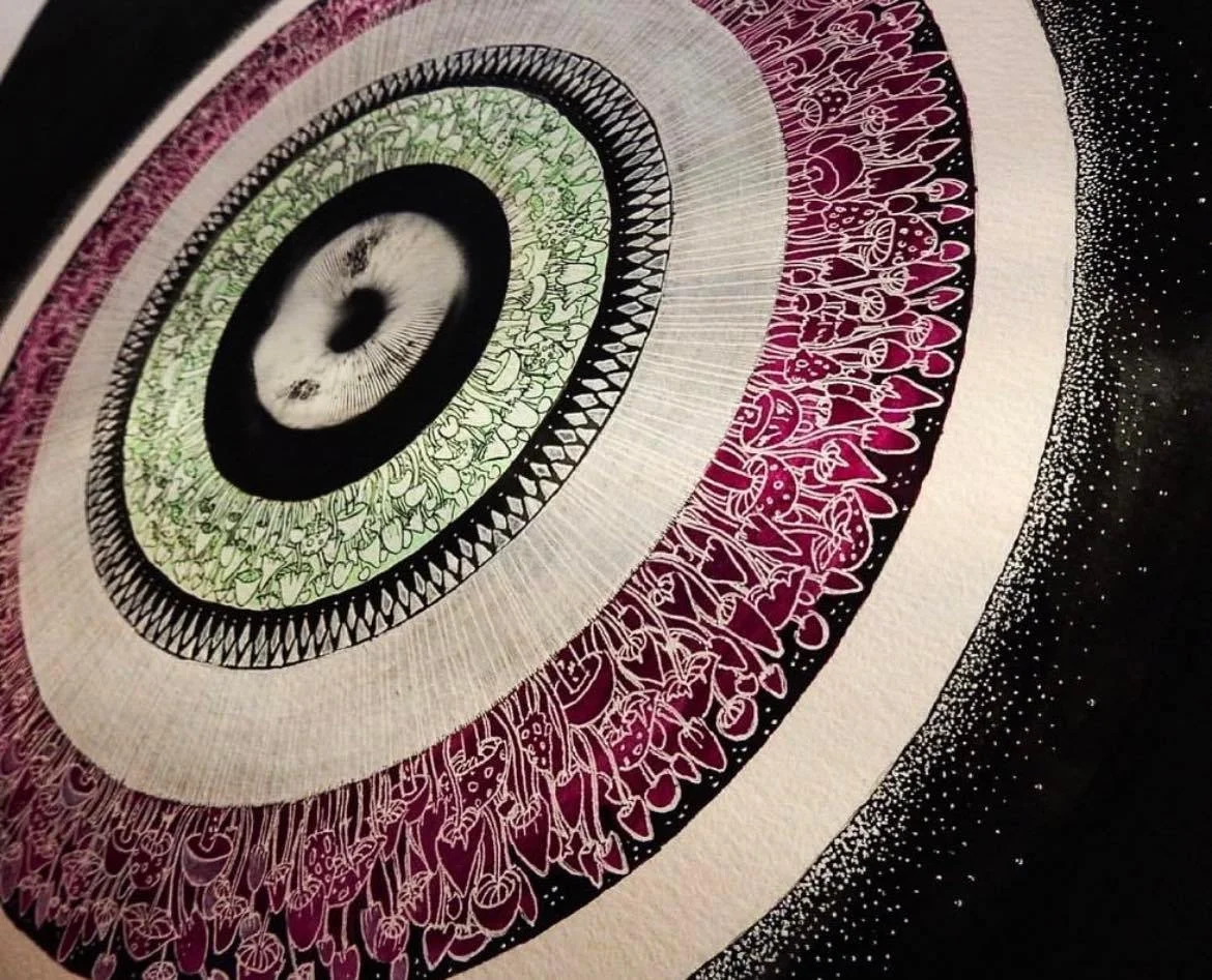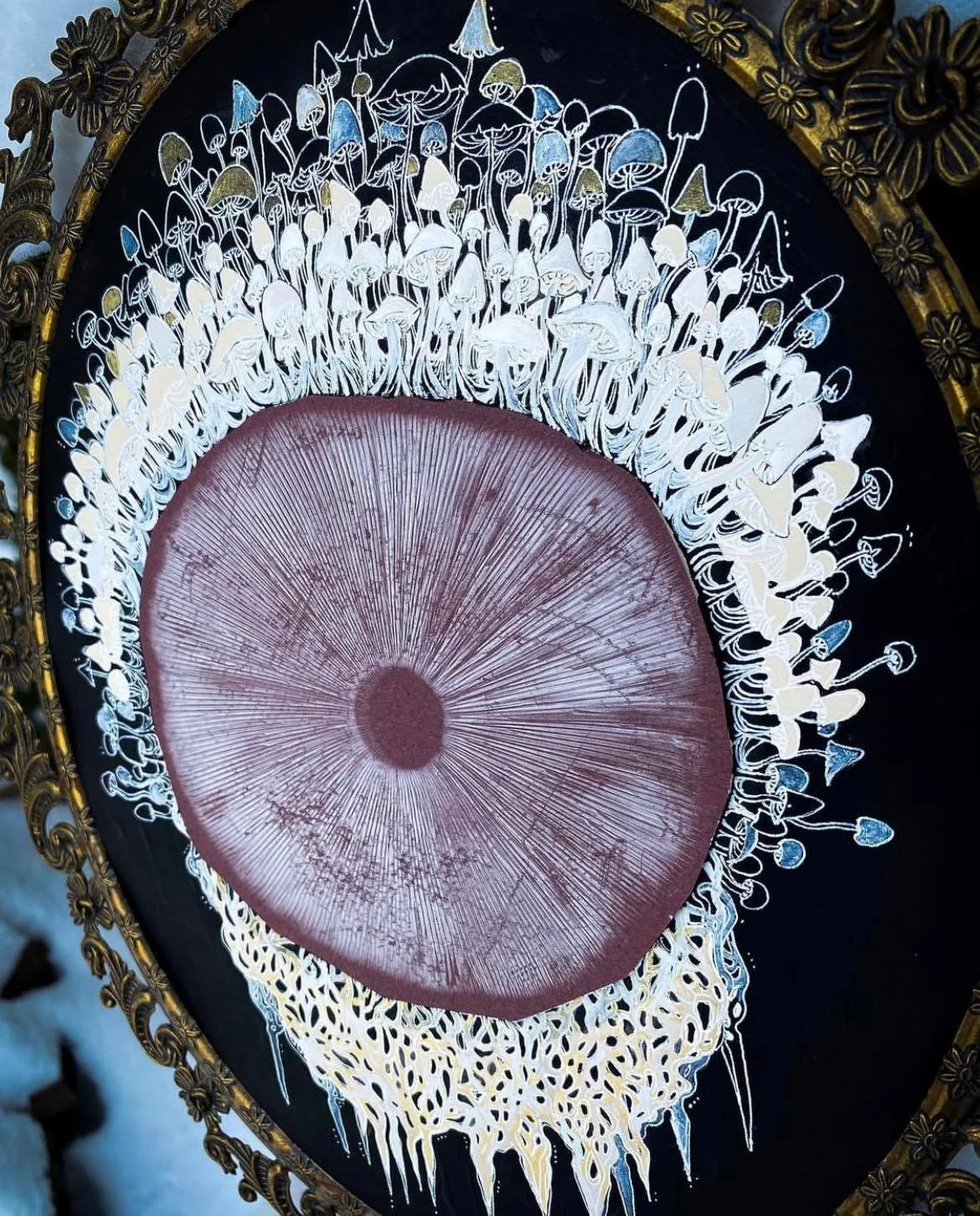 Fungi inspired creations with dried specimens and spore prints